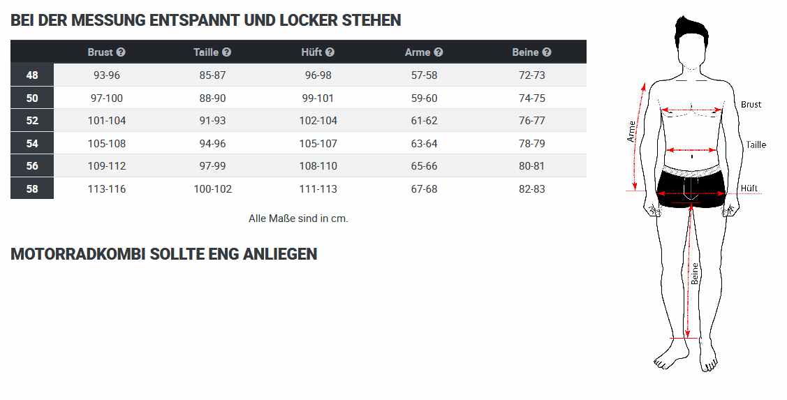 die Kombi kann auch mit einem zertifizierten Brust- und Rückenprotektor von Sas-Tec ausgestattet werden